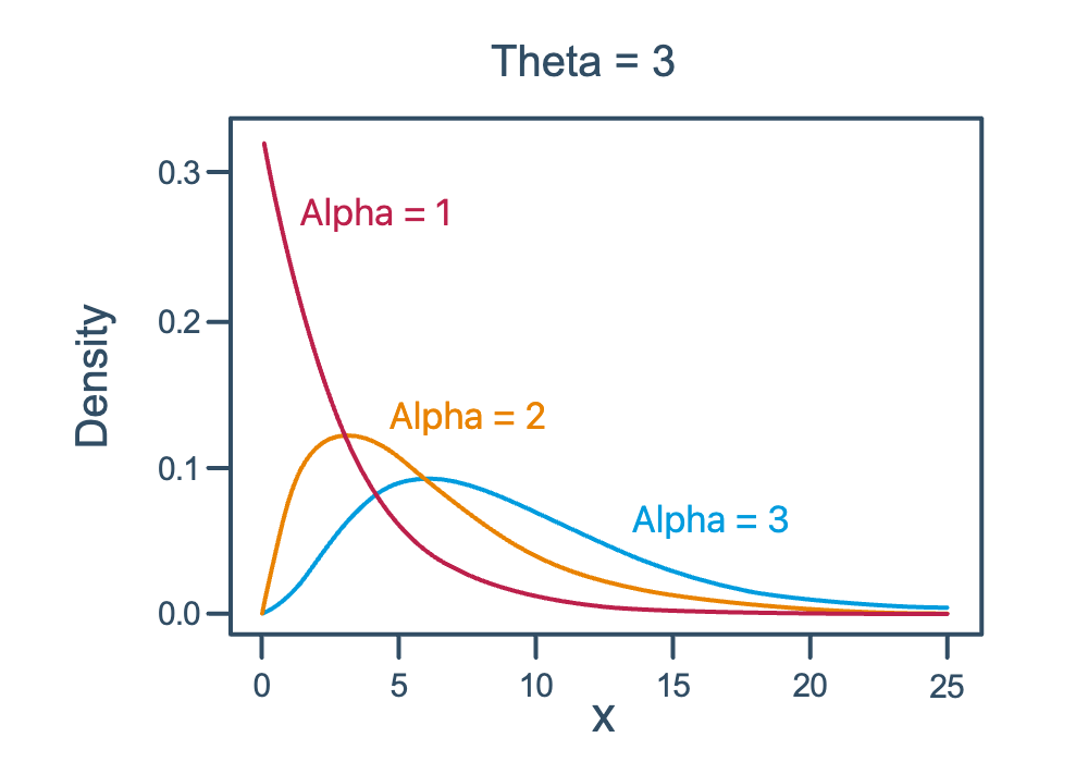- understand the effect that the parameters \(\alpha\) and \(\theta\) have on the shape of the gamma probability density function.