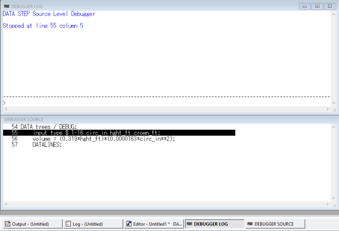 DATAstep debugger to find execution-time errors - recognize the difference between error, warning, and note messages displayed in the log window